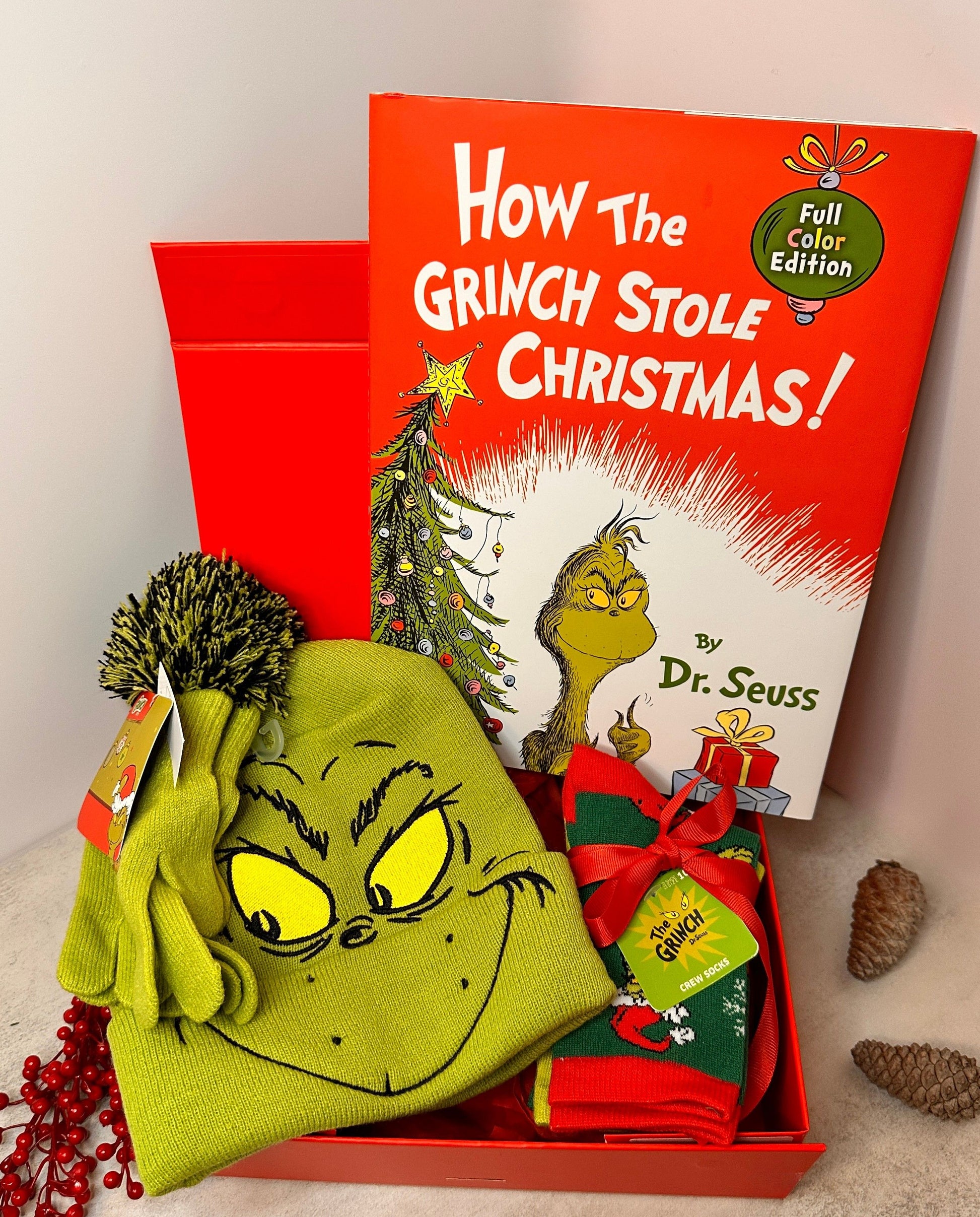 - the classic hardcover book "How the Grinch Stole Christmas" by Dr. Seuss